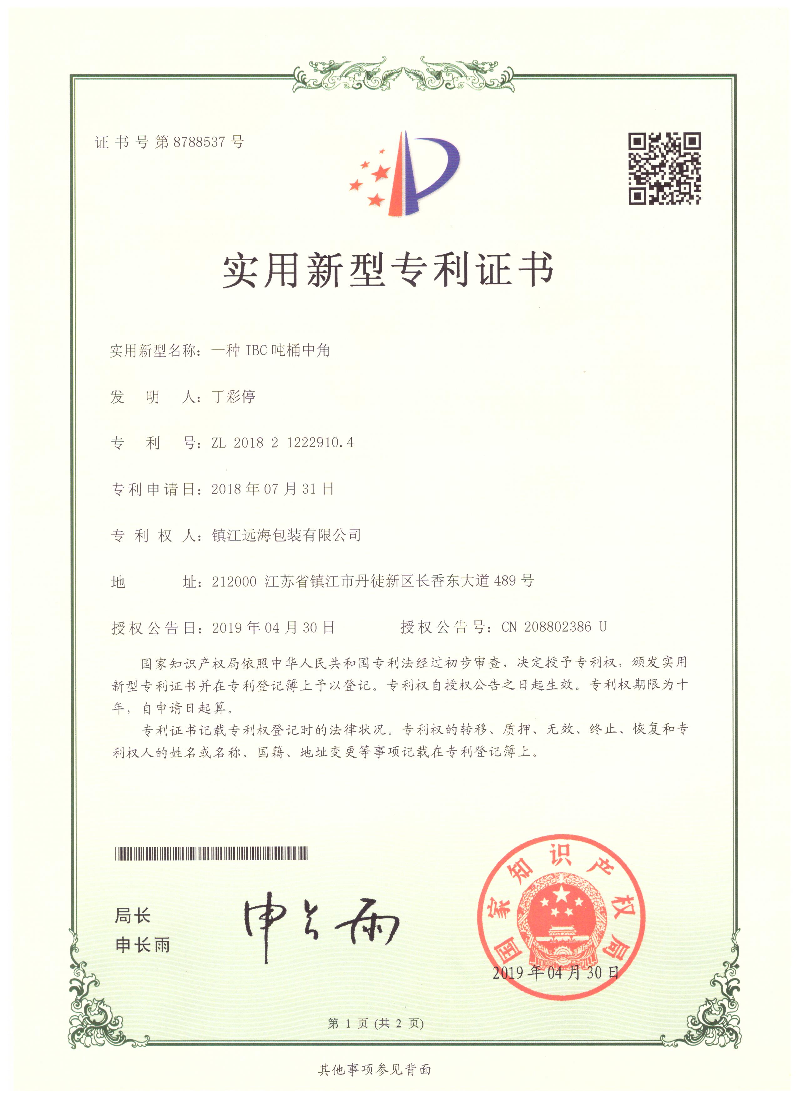 MORE>>Zhenjiang Yuanhai Packaging Co., Ltd. was established in August 2014. It is an enterprise specializing in the production of IBC drums and spare parts. The main products are various types of bottom plates, beams, bottom corners, signs, galvanized welded pipes, etc. The company has 8 patents for appearance and practical products of related products.